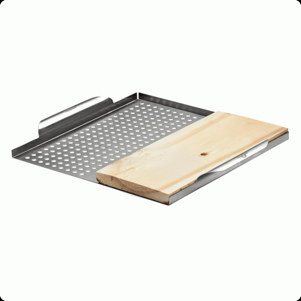 Napoleon® Edelstahl Gemüsekorb inkl. Zedernholz Räucherbrett (70026)