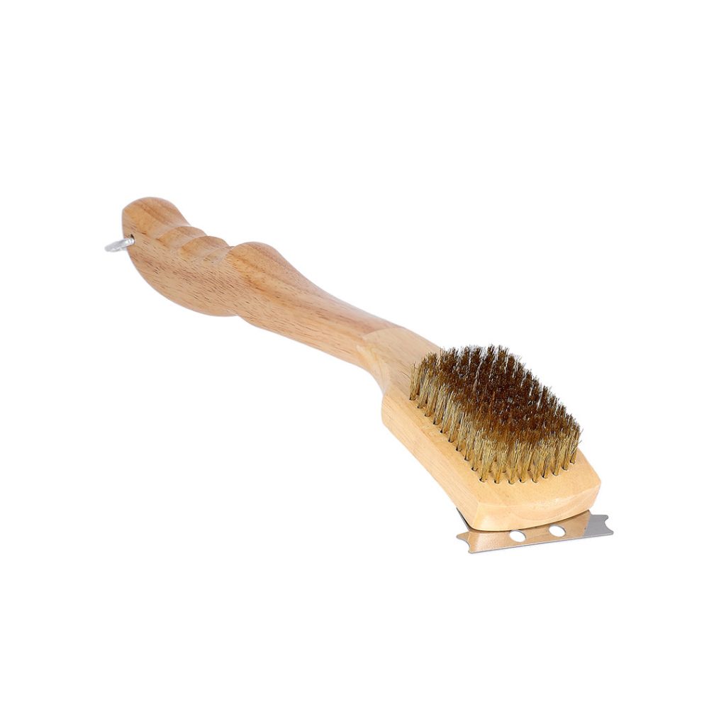 Die Holz-Grillbürste besitzt langlebige Messingborsten und ist besonders für die Reinigung emaillierter Gusseisen-Grillroste geeignet.