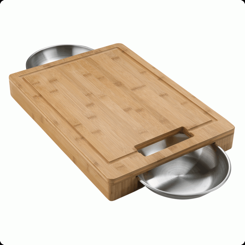 Napoleons PRO Schneidebrett (ca. 33 x 46 x 5,5 cm) mit zwei Edelstahl-Schalen vereint gleich mehrere tolle Funktionen.