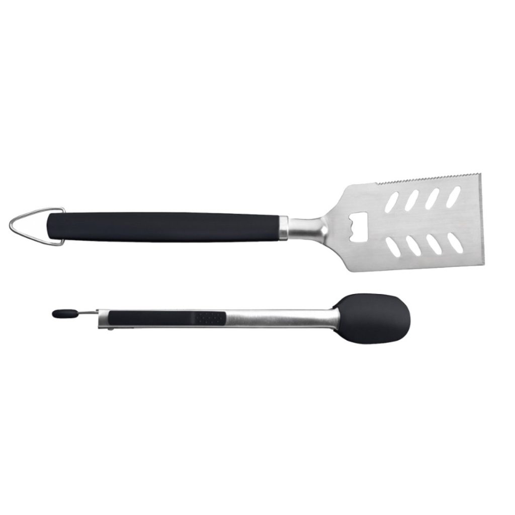 Das zweiteilige Besteckset mit schwarzen Griffen besteht aus Grillzange und Grillwender und ist nicht nur im Garten ein treuer Begleiter.