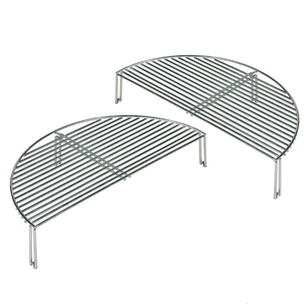 Mit dem Monolith Set aus zwei halbmondförmigen Edelstahlrosten lässt sich die Grillfläche Ihres Monolith LeChefs verdoppeln.