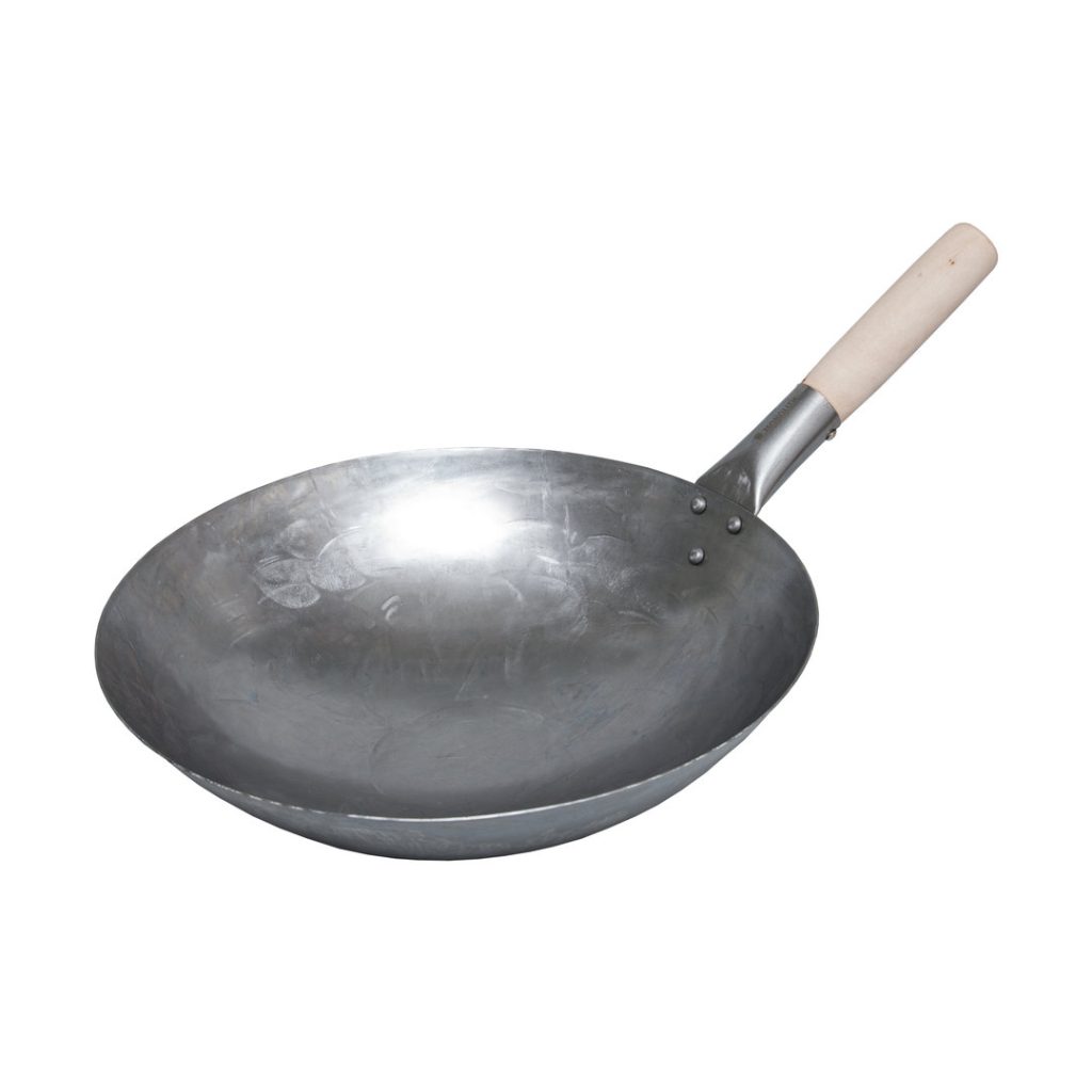 Monolith Wok aus Weißstahl mit rundem Boden.