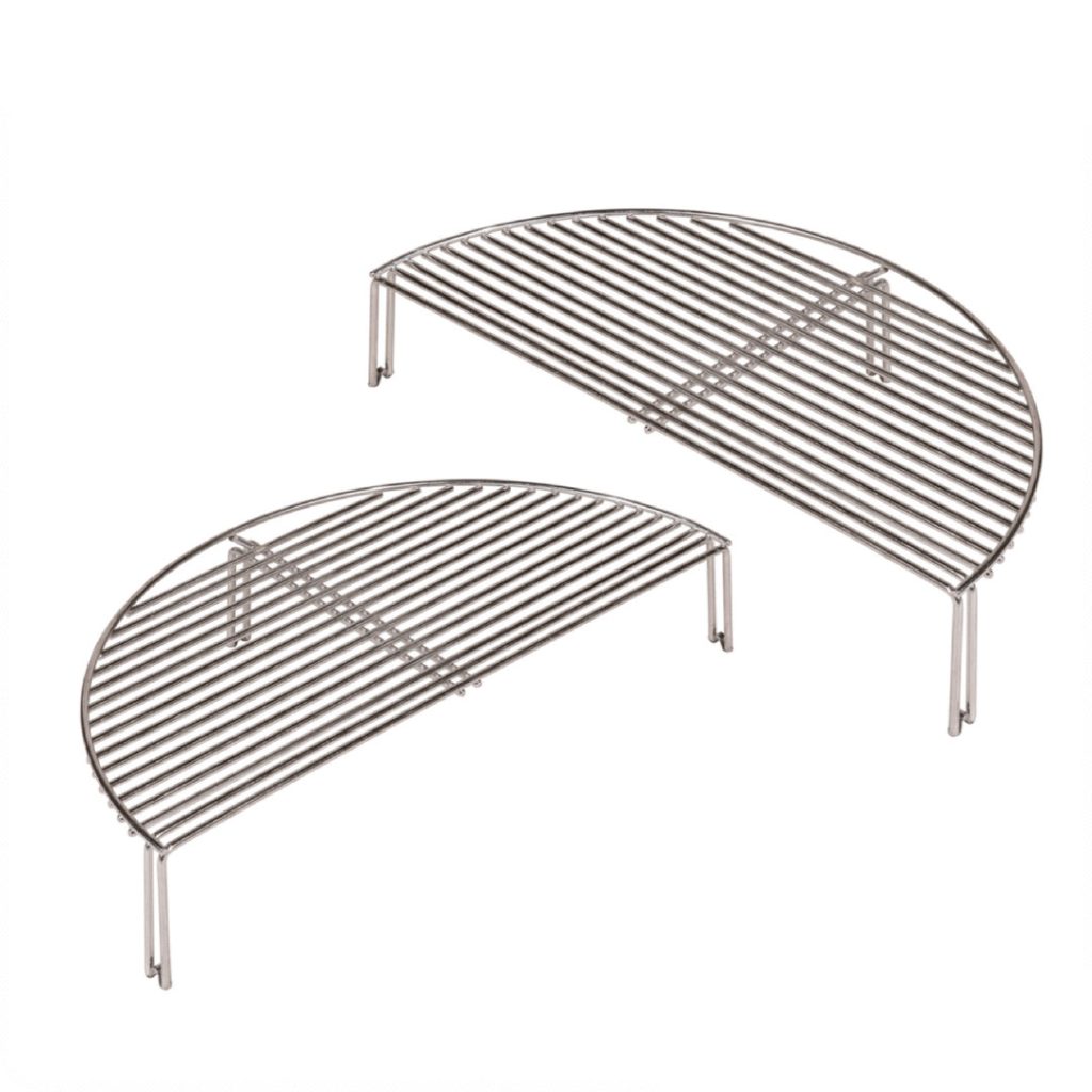 Mit dem Monolith Set aus zwei halbmondförmigen Edelstahlrosten lässt sich die Grillfläche Ihres Keramikgrill Classic verdoppeln. NICHT VERWENDBAR MIT DEM SMART GRID SYSTEM