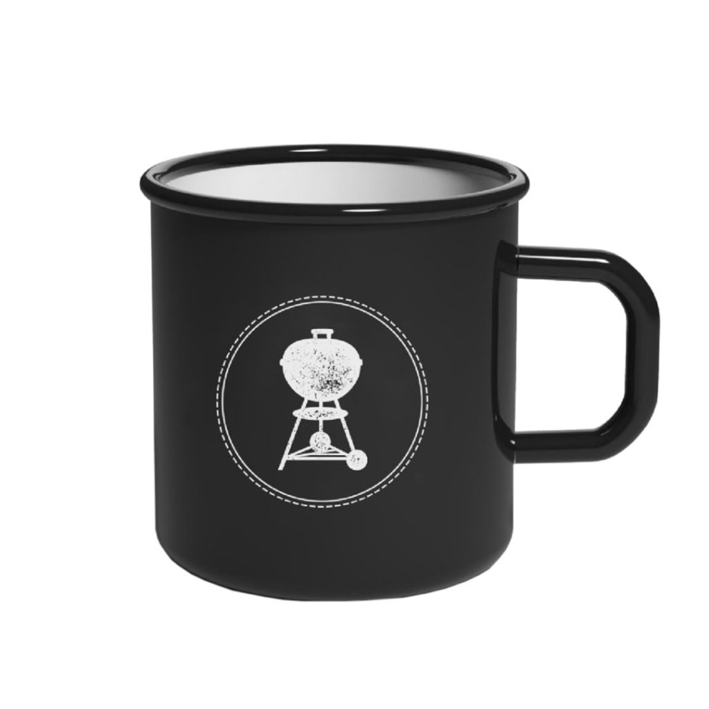Garten – Campingurlaub oder Fetivalbesuch…. diese, aus Metall gefertigte, emaillierte WEBER®-Tasse bringen Sie immer wieder heil nach Hause.