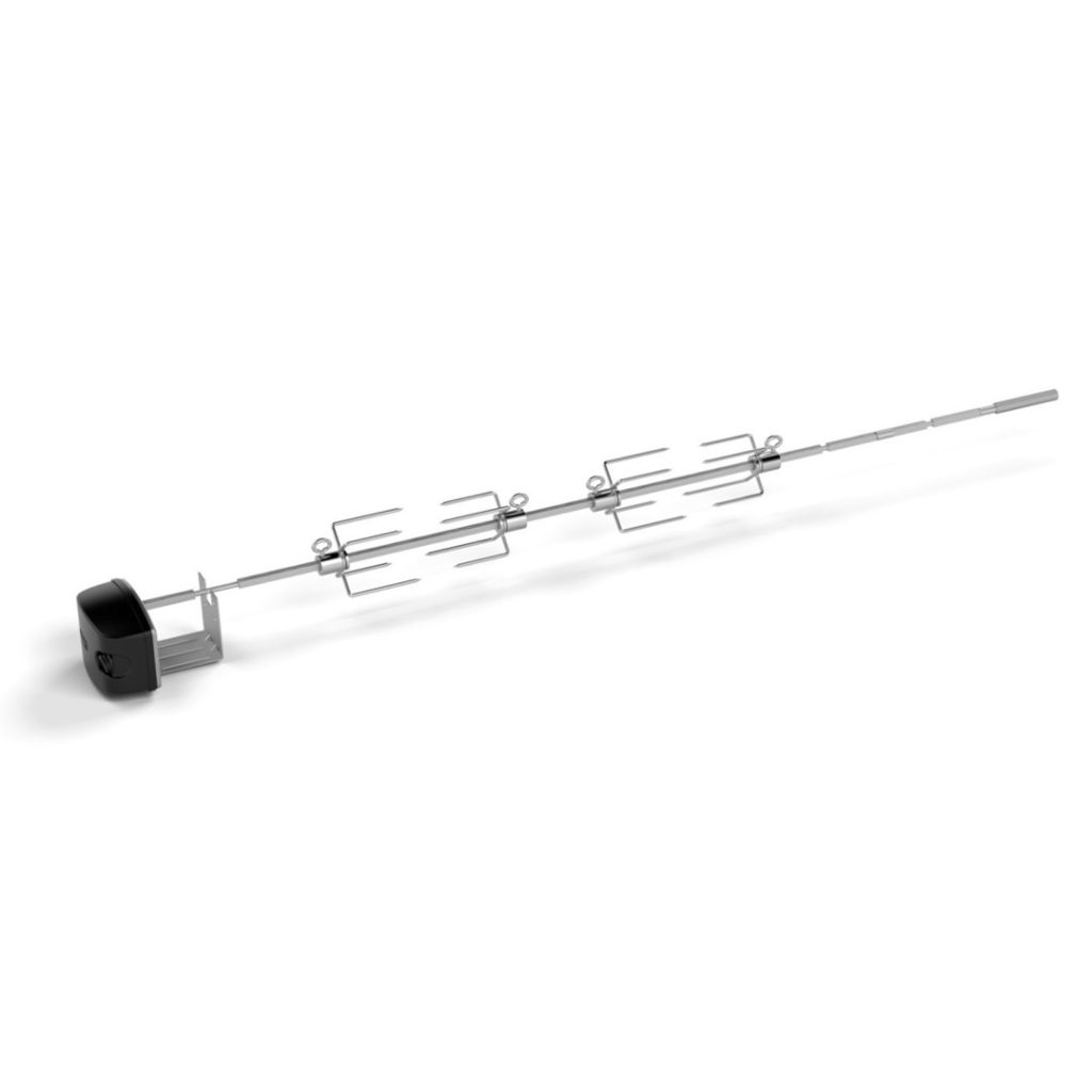 Der WEBER® Drehspieß Spirit® ist bis 4 kg belastbar und wird von einem leistungsstarken Motor mit 220 V Anschluss angetrieben.